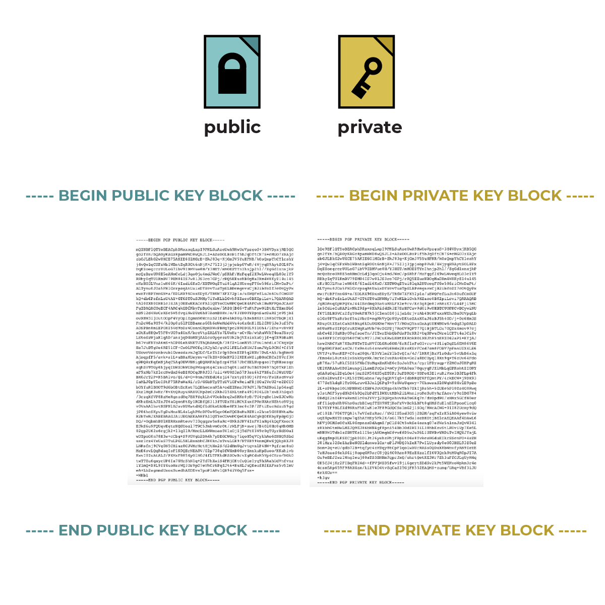 تأتي المفاتيح الخاصة والعامة في أزواج متطابقة، لأن المفتاح الخاص والمفتاح العام مرتبطان رياضيًا. يمكنك تخيل الأمر كصخرة منقسمة إلى نصفين. عند ضمّهما معًا، يُشكّل النصفان الكل. لا يُجدي أي نصف صخرة آخر نفعًا. ملفات المفتاح العام والمفتاح الخاص متشابهة إلى حد كبير، ولكنها في النهاية تتكون من تمثيلات قابلة للقراءة حاسوبيًا لأعداد كبيرة جدًا.